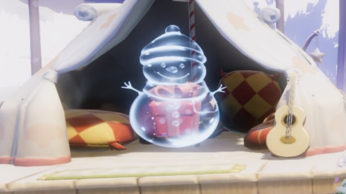 At Onsen Mountain, a bubble encircles the snowman built for Eric on a nearby rooftop. During Winter Frost Season activities, after constructing the snowman as Eric requests, climb to the roof. Stand on the snowman’s head and leap to capture the orbiting bubble.
