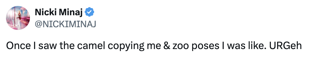“As soon as I noticed the camel copying me & zoo poses I used to be like. URGeh,” she wrote. “Billionaires obsessive about my husband for YEARS. mad their chest appears like shriveled up ramen within the cup that been within the pantry for years. irrespective of how a lot Tae Bo they take they seem like a prune.”