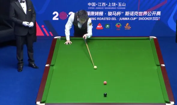Reigning world snooker champion Zhao Xintong dazzled spectators with a remarkable one-handed trick shot during his second-round match against Long Zehuang at the World Open.